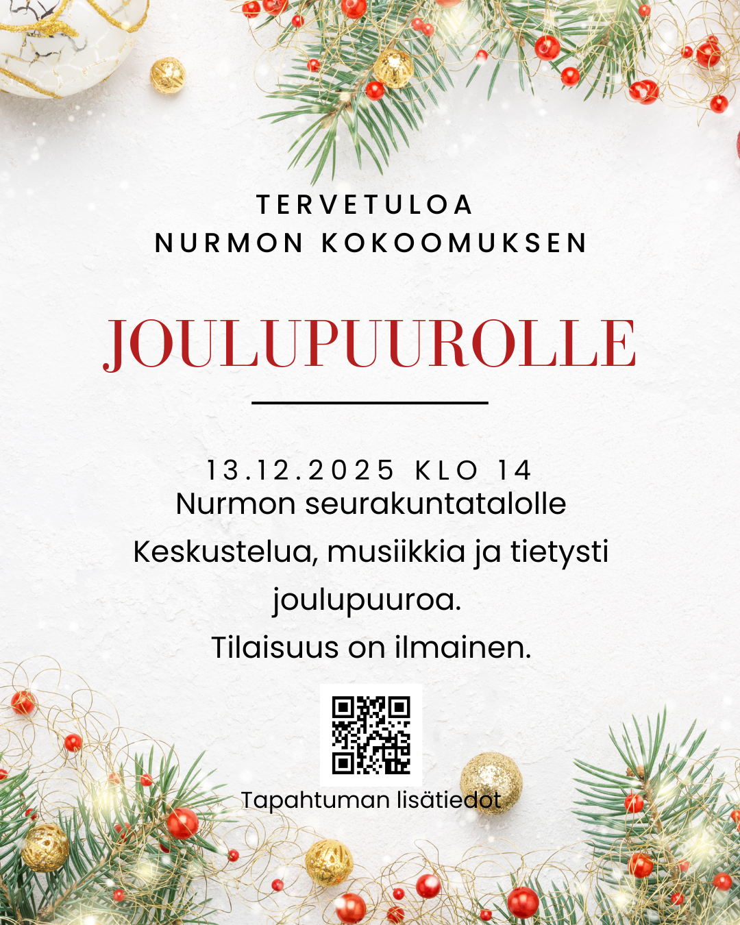 Lämmin kiitos kaikille Nurmon Kokoomuksen joulupuurotapahtumassa 11.12. mukana olleille! Kansanedustaja Paula Risikko toi meille terveisiä eduskunnasta ja kertoi mielenkiintoisia asioita…